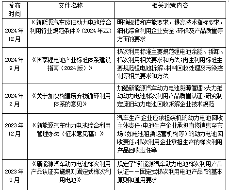近年來,一系列行業(yè)政策從回收責(zé)任劃分、技術(shù)標(biāo)準(zhǔn)與認(rèn)證、補(bǔ)貼與資金支持、產(chǎn)業(yè)協(xié)同與市場推廣、安全與環(huán)保要求等多維度發(fā)力,全面推進(jìn)動(dòng)力電池回收利用體系建設(shè)。