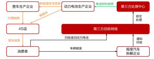 第三方回收模式是指由電池生產(chǎn)商或整車制造商委托專業(yè)的第三方企業(yè)來負(fù)責(zé)廢舊動(dòng)力電池的回收,進(jìn)而實(shí)現(xiàn)“電池回收+再生利用”的商業(yè)模式。